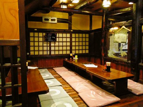 気楽に寛げるお座敷でお酒や料理を存分に楽しんで。少人数はもちろん、大人数でもゆったりとした宴会を。