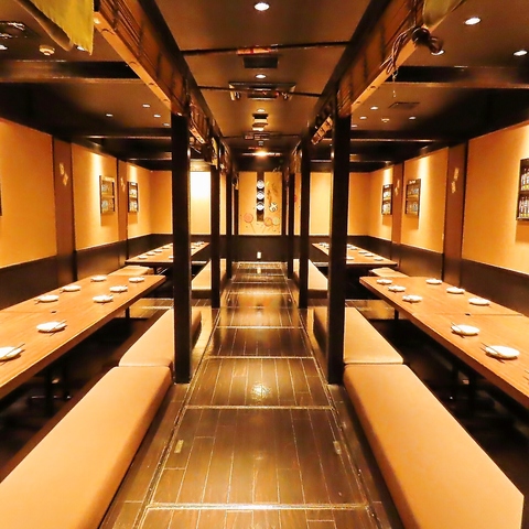 大人数での宴会に最適な居酒屋として、広々としたテーブル席をご用意。飲み放題付きコースも充実しており、個室の利用も可能です。設備や環境が整っているので、幹事様が安心してご予約いただけます