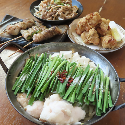 名物の野菜巻き串と博多もつ鍋を楽しめるコースになります。貸切や宴会など受付中ですのでご相談ください!