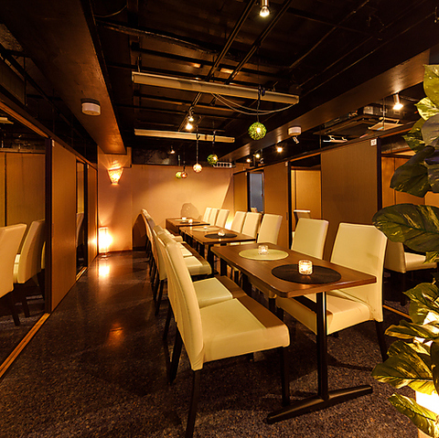 宴会大歓迎!洗練された上質空間の中での宴会は、これまでにない思い出に。柔らかな照明が差し込んだ雰囲気あるテーブル席は、しっとりと飲みたいときにもおすすめです◎完全個室が充実しているので、多数のニーズにお答えできるよう最大限ご希望に添わせていただきます!ぜひごご相談ください。