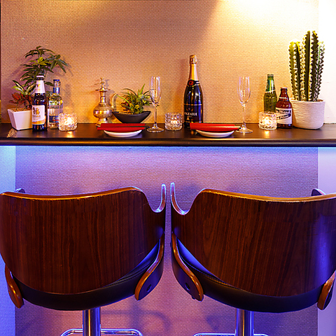 仕事終わりにふらっと立ち寄りたくなる、自分だけのカウンター席。二人並んで話したいデートにも人気です。しっかりとスペースを確保し、適度な距離感のあるカウンターは上質そのもの。ゆっくりと羽を伸ばしてご寛ぎいただけますよ♪おひとりさまもお気軽にどうぞ!