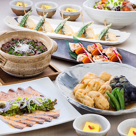 ~千の庭 お薦め~ 食材にこだわった千の庭おすすめの旬のコースをご用意!生ビールはもちろん、サワーや日本酒等充実の2時間飲み放題付き(お料理のみは3350円(税込)でご用意)是非ご利用ください♪歓送迎会や女子会・会社宴会など各種ご宴会に◎居酒屋をお探しの際は千の庭へ!