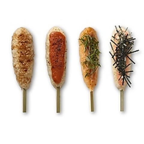 焼きおにぎりも食べやすく串にしちゃいました。大人気のためシリーズ化決定! 【炙り辛みそ・梅しそ・明太マヨ】 330円