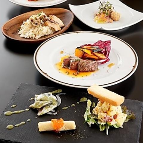 最上階から望む絶景は圧巻。開放感溢れる空間でゆったりとお食事をお楽しみいただけます♪シェフが腕を振るうコースは、飛騨牛や新鮮な野菜をふんだんに使用したホテルならではの上質な料理をご提供。彩り豊かな前菜からメイン、デザートまで、五感で楽しめる一皿をご用意しております。日常を忘れる特別なひとときを、ぜひ当店で。