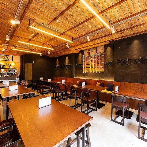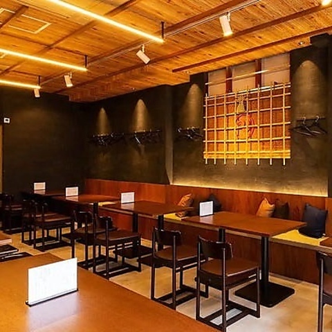 温かな灯りがやさしく照らす広々とした店内。多様なレイアウトができるテーブル席は、様々な人数に対応可能。足を伸ばしてゆったりとくつろげる小上がりの座敷席や、名物の炭焼きを目の前で眺められるカウンター席も完備。40名様~最大70名様の店内丸ごと貸切も承っておりますので、まずはお気軽にご相談くださいませ。