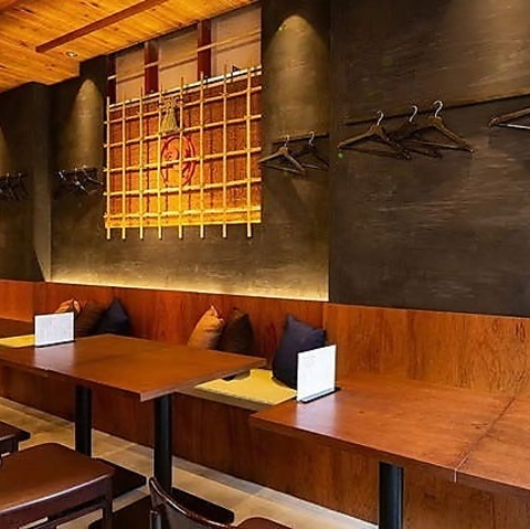 【テーブル席:~6名様×3卓】雰囲気&居心地抜群◎ゆったりと寛げるお席でお食事を!~6名様用テーブル席を3卓完備。気軽に座れるとお子様からご年配の方まで幅広い世代のお客様に大好評です。温かみのある明るい照明が和やかな雰囲気を演出し、和の落ち着きのある空間で、ゆったりとお食事をお愉しみいただけます。