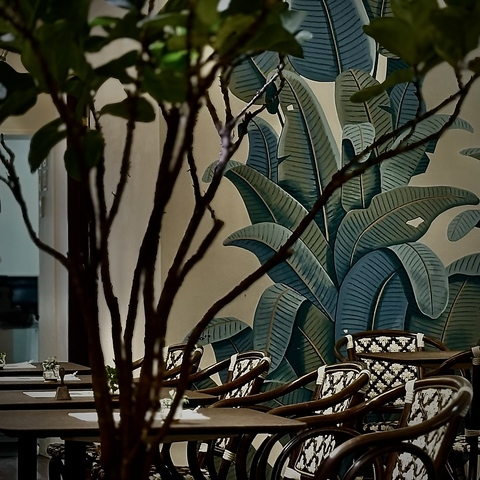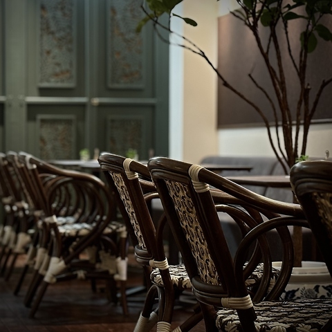 グリーンとブラウンを基調とした落ち着いた空間でおくつろぎください