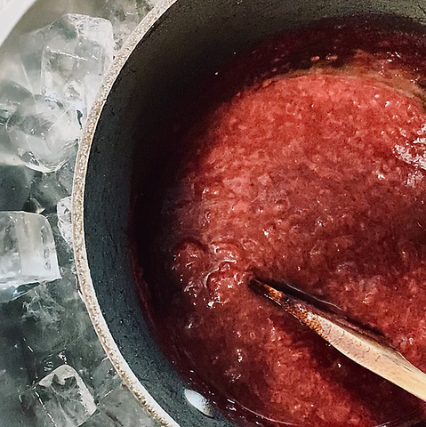 国産米粉のグルテンフリーパンケーキメニューに使用するフルーツソースは、ワインときび糖を使った甘さ控えめの自家製となっております