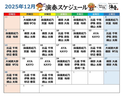 ★12月の演奏スケジュール★画像が見えにくい場合は、パソコンからご確認ください。