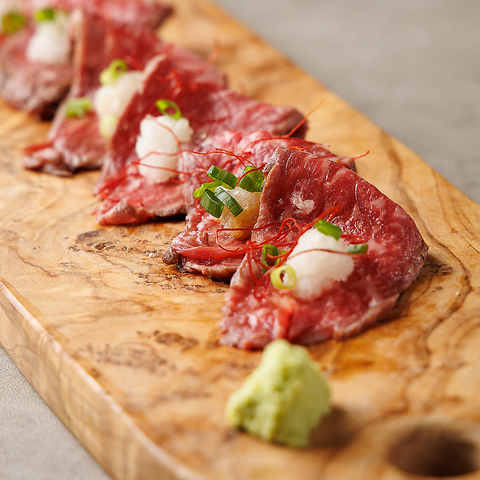 年間出荷数が限定されている宮崎県産の尾崎牛…当店ではグリルや肉寿司、タタキでお楽しみいただけます