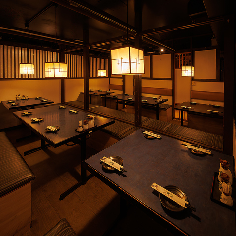 皆が見渡せる宴会席は最大80名様まで!少人数用個室も完備♪◇牛タンと肉ずしの個室居酒屋 輝 渋谷店◇
