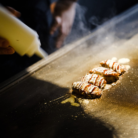 名物【厳選ステーキ】【打倒マック】【お好み焼き ふわ焼き】など!目の前で職人が見せる鉄板焼は大迫力!