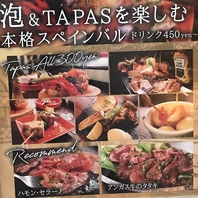 自慢のピンチョスとタパスでシャンパンをどうぞ☆リーズナブルにお楽しみください!