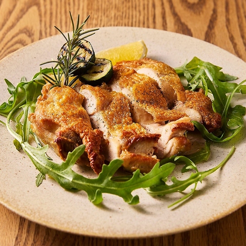 ローズマリーとシチリア産の塩で、シンプルにお召し上がりください。大山どりのうまみを存分に味わえます!