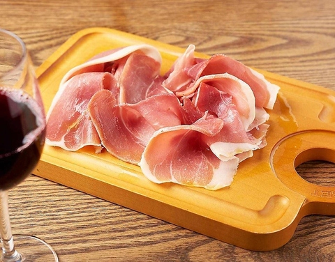フランス産の上質な生ハムを、ご注文ごとに丁寧にスライスしてご提供。芳醇な香りとまろやかな塩味が口いっぱいに広がり、ワインや前菜との相性も抜群です。切りたてならではの食感と風味をお楽しみください。