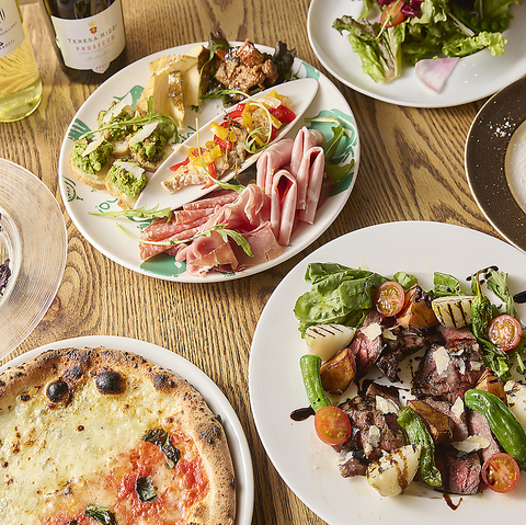 【90分飲み放題付き】専用窯で焼き上げるピザの美味しさを存分にお楽しみいただけ旬の食材を盛り込んでお楽しみいただける Mano-e-Mano のスタンダードコースです。ボリュームたっぷりでお楽しみいただけるプランをご用意させていただきました。
