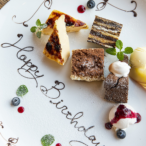 誕生日や記念日はもちろん、パーティの主役へのサプライズなどお気軽にご相談ください。デザートへのメッセージなどもご予約時にお伝えいただければご用意可能です!