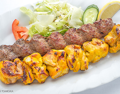 キャバブ ヴァジリ(鶏のモモ肉とラム&ビーフミンチの串焼き)ナン又はライス スープ&ソフトドリンク Kabab Vaziri Nan or Rice Soup &Drink Chicken Thigh, Mix Of Minced Beef & Lamb