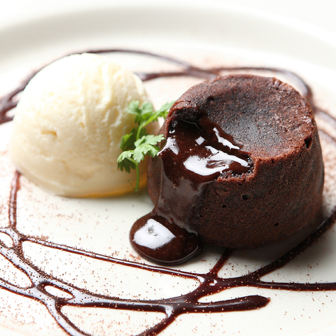 生地の中から熱々のとろけるチョコレートが出てくる手作りケーキ バニラアイスとご一緒に!