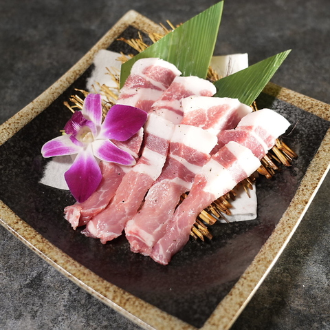 オレイン酸が豊富な当店のブランド豚は、サンチュ【エゴマの葉・にんにく・青唐辛子・キムチ】と巻く当店自慢のサムギョプサルとしてお召し上がり下さい。食べれば食べるほど美と健康に良いとされています☆厳選された肉の旨みが口いっぱいに広がり、至福の味わいをお楽しみいただけます!サンチュと特製タレとの絶妙なハーモーニ―を♪