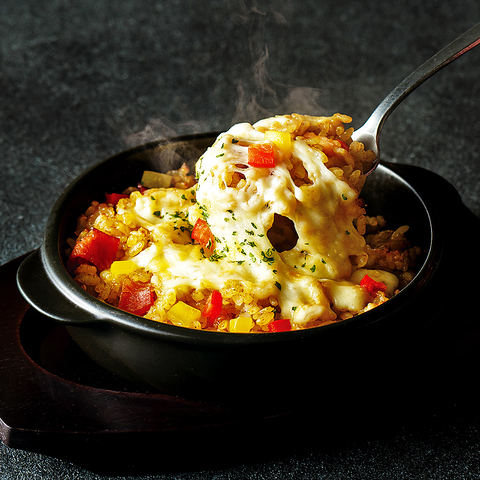 ◇ドライカレーのチーズオーブン焼き:658円(税込) ◇ホットチリの鉄板チャーハン:878円(税込) ※画像はドライカレーのチーズオーブン焼きです