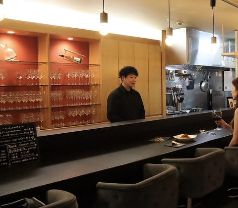 居心地のよいカウンター席があり、一人でもリラックス出来る。好みの料理をつまみながら美味しいワインを。