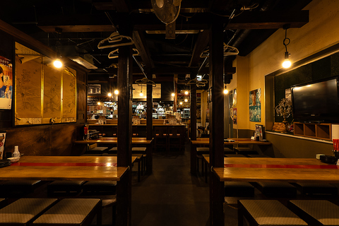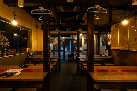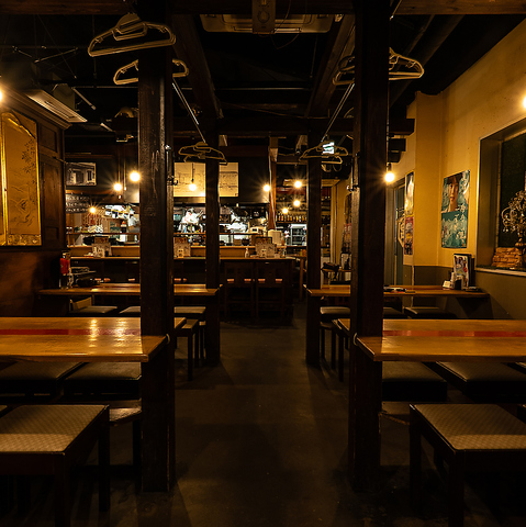昭和モダンな店内。人数に合わせてテーブル席のアレンジ可能です◎