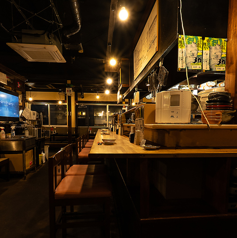 当店のカウンター席は他のお店のカウンター席よりテーブルの奥行きがありますので料理もバッチリのりますよ!!なによりお一人様の来店も多いのが特徴です!カウンター専用メニューもございます!!