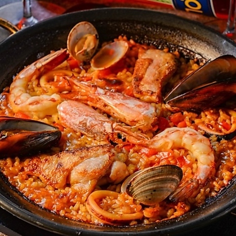 大きなエビ、ムール貝をたっぷりと!しっかり旨みを効かせた、出汁にもこだわった自慢のパエリア!!