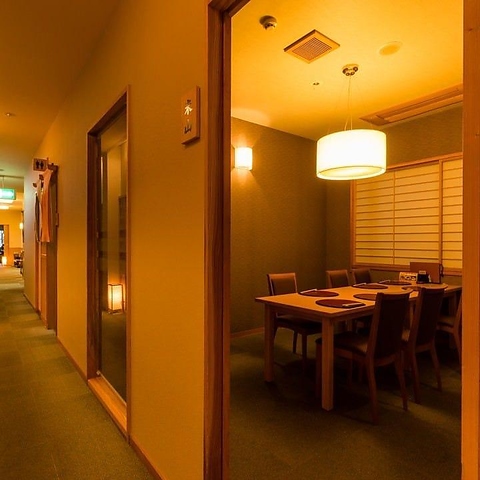 周囲を気にせず過ごせる個室は接待をはじめご家族にも大好評です。ゆったりとした広めのお部屋で寛げます。
