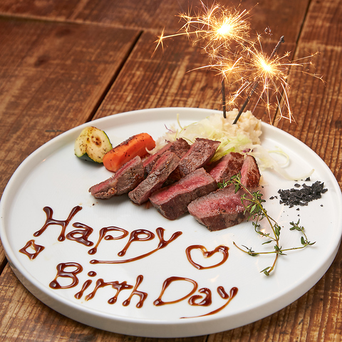 ステーキメニューを無料でサプライズメッセージプレートに!お誕生日、記念日などご相談下さいませ。