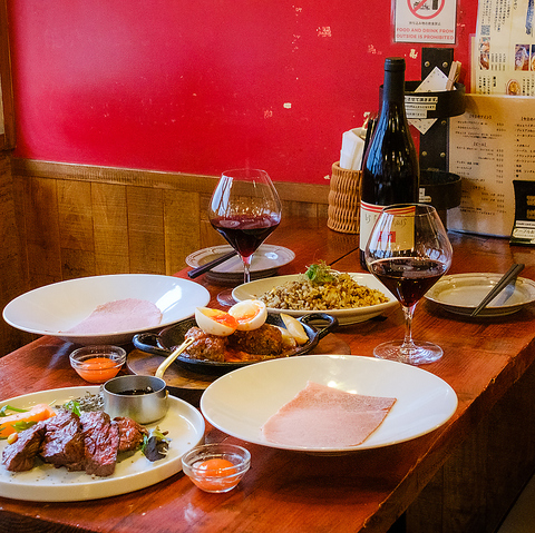 ステーキに炙りに一品、バラエティに富んだメニューと肉質には自信あり!お肉は焼かれて提供されるので訪れた人は熱々ジューシーなお肉を堪能するのみ!新メニューもどんどん開発して更なる肉ワールドへ皆様をお連れします!デートや女子会、飲み会はもちろん、お一人様もお気軽にお立ち寄りください♪