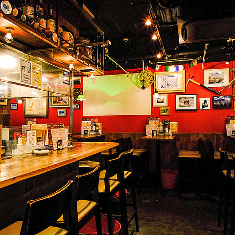 イメージカラーの赤い壁が印象的なウッディな内装。ディナータイムはJazzの流れる落ち着いた雰囲気の中でオシャレディナーや記念日のご利用にも。