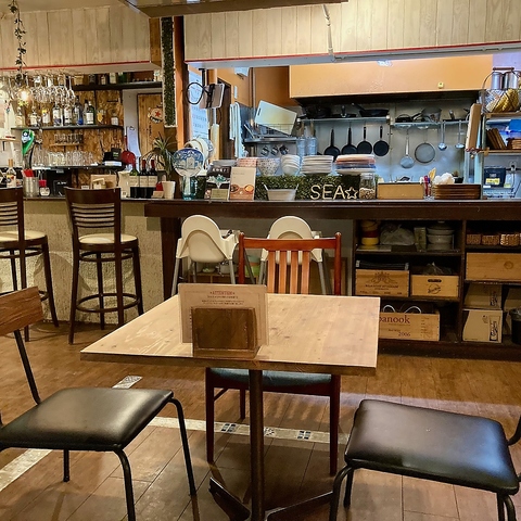 海沿いのカフェのようなナチュラルで開放感のある内装は全て手づくりです♪