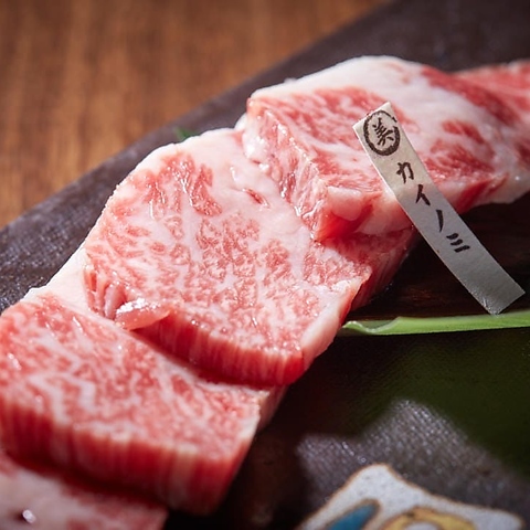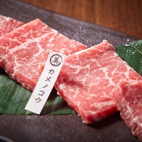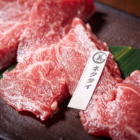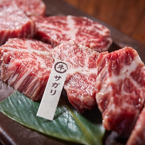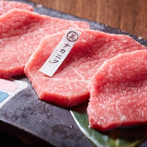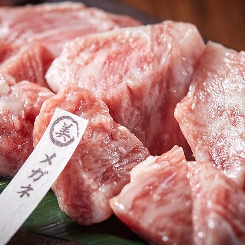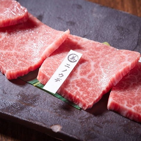 サシが良く入り柔らかく、大変美味しい焼き肉部位。(石垣美崎牛 2,31円/ 国産牛 1,760円)※Beautifully marbled and incredibly tender-an exquisite cut that offers the ultimate yakiniku experience.(Ishigaki Misaki Beef \2,310/ Selected Japanese Beef \1,760)