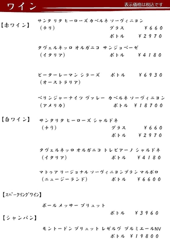 | ソフドリ・アラカルト | オレンジジュース・グレープフルーツジュース・ウーロン・冷茶・ミネラル・お湯・氷 |