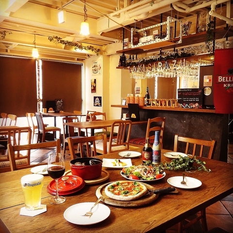 【カウンター8席】◎デート、お仕事帰りに!バルっぽいカウンターはとってもお洒落です。上には見たこともないベルギービール専用グラスがキラキラ☆お一人様にもおすすめ◎スタッフとの距離が近いので、おすすめのビールやタパスなども教えちゃいます♪カウンターならではのお得なサービス♪お料理のサービス致します♪