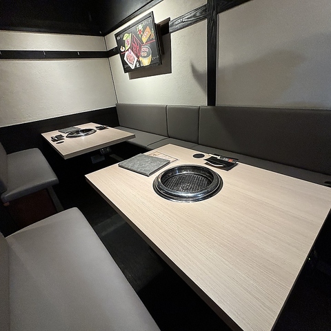 【店内テーブル席】お一人様からファミリー、団体様まで幅広くご利用いただけます。落ち着いた雰囲気で街の喧騒を忘れ召し上がる絶品の焼肉は、お客様をうっとりとした気持ちにさせてくれます。高級感のあるテーブルで非日常の空間をお楽しみください☆