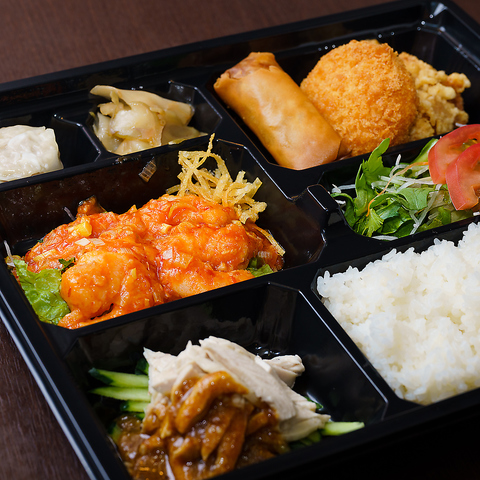 大人気の海老チリをメインとしたボリューム満点弁当です。