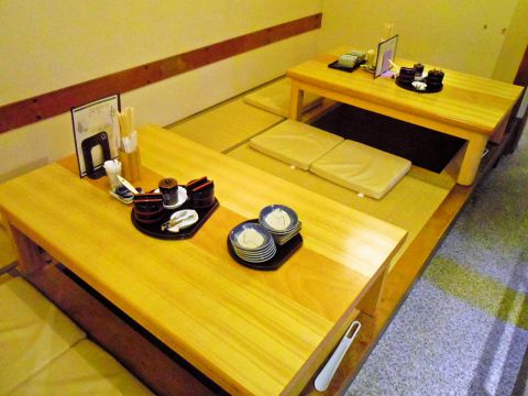 足をゆったり伸ばせる掘りごたつもあり、老いも若きも老若男女がゆっくりと楽しめるようになっている。
