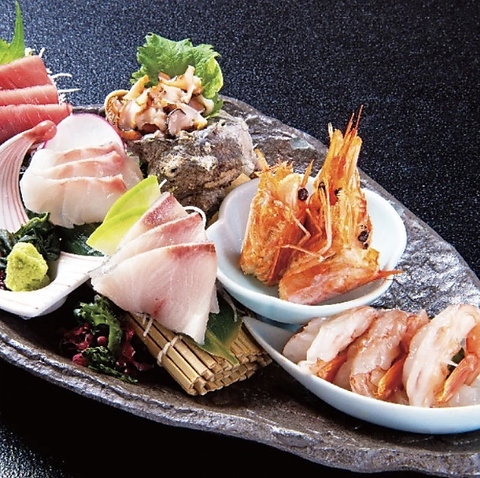 地元房総の魚介類を使用した新鮮なお刺身。地魚中心に予算や人数に応じた刺盛りが堪能できる。