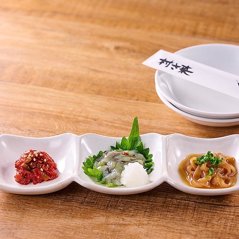 - お通し385円(税込)/(1)一般的に食肉の生食は食中毒のリスクがございます。(2)お子様、高齢者の方、その他食中毒に対する抵抗力の弱い方は生食をお控えください。