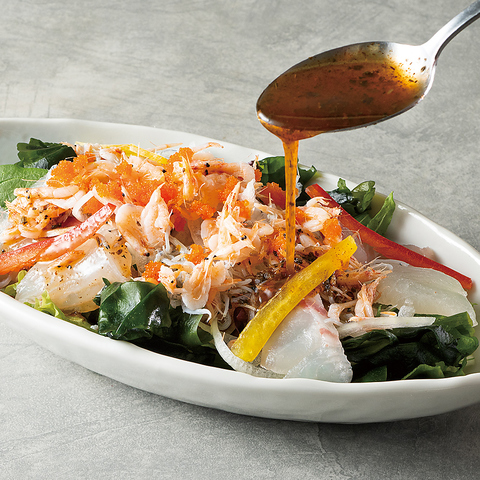 鮮度や産地にこだわった刺身やお寿司などの海鮮料理をご用意! ほど良い脂にとろけるような甘みを感じられるまぐろの王様「本まぐろ」をはじめ、 鮮魚バイヤーが厳選したおすすめ鮮魚を贅沢に盛合わせた「刺身盛合せ」や上品な甘みと旨味が味わえる安全安心な「国産サーモン刺身と炙り盛合せ」などぜひ一度お試しください!