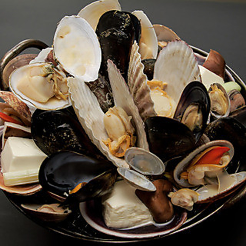 どどーーん!!と見た目のインパクトがすごい!!日本全国の活け貝を和風だしで一気に蒸し上げた料理です。Mサイズ(2~3名様)とLサイズ(4~5名様)をご用意しております。