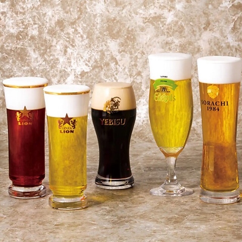 温度、ビール器具の洗浄、注ぎ方、全てにこだわった自慢の生ビールです。 【サッポロ黒ラベル】【エーデルピルス】【ソラチ1984】【ヱビスプレミアムブラック】【黒ラベル&ヱビスプレミアムブラック】や月替わりの【ゲストビール】など、常時ご用意しております。 銀座ライオンだから味わえる、高品質な生ビールをお楽しみくださいませ♪