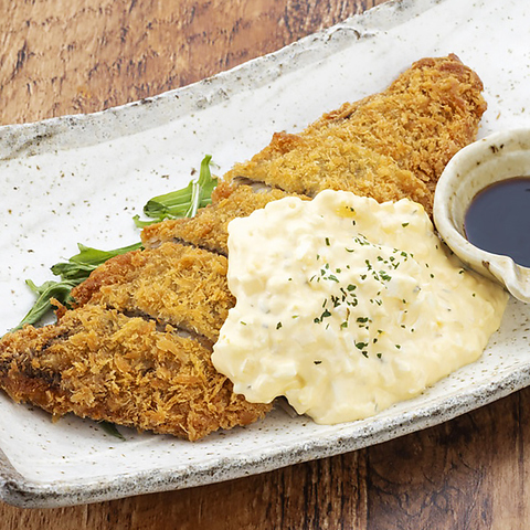 わん一番人気!ひとつずつ丁寧にチーズを包み込んだ、なんこつ入りのつくね。ひとつひとつ丁寧に。わんの名物、チーズつくねは蒸してふっくらさせてからお店でひとつひとつ丁寧に焼き上げます。とろ~りチーズと黄身でまろやかな味わいに。他にも「でっかい鶏唐!ジューシー揚げ」や「おたふくオムレツ」等!自慢の創作和食をお楽しみください!