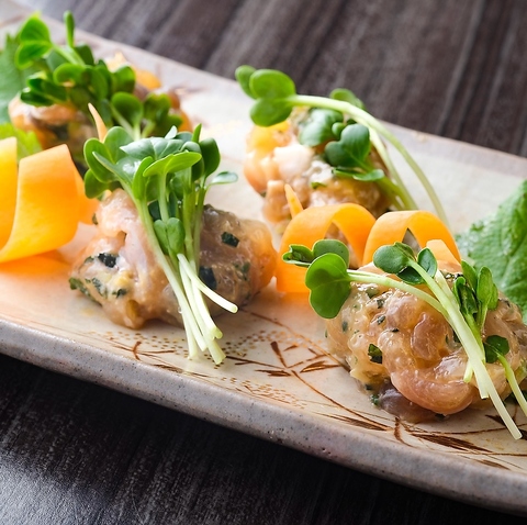 刺身を味噌、ネギ、生姜のみじん切りと混ぜ叩いた料理です。