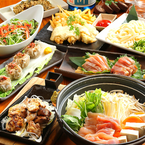 【2026/2/1(日)より提供開始】【2時間飲み放題付き】歓送迎会の演出をお手伝い♪「横断幕特典」「寄せ書き焼酎ボトル」をご用意♪(4日前迄のご予約)。軍鶏たたき風2種盛合わせや軍鶏屋の水炊きなど、人気メニューが勢ぞろい!前菜から〆まで自慢のお料理全9品をお楽しみください。