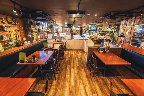 カルフォルニアガレージで遊び心のある店内!"大人の遊び場をイメージして作ったこだわりの店内!男の人なら誰しも憧れるカルフォルニアガレージを鬼ゴリで再現!ガブ飲み!"