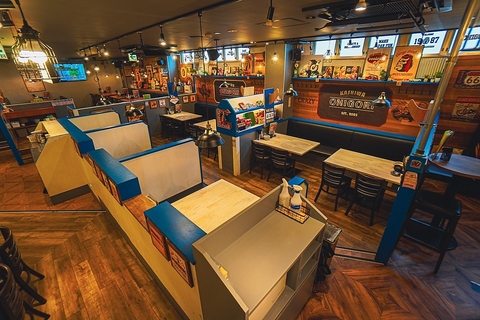 カルフォルニアガレージで遊び心のある店内!"大人の遊び場をイメージして作ったこだわりの店内!男の人なら誰しも憧れるカルフォルニアガレージを鬼ゴリで再現!ガブ飲み!"